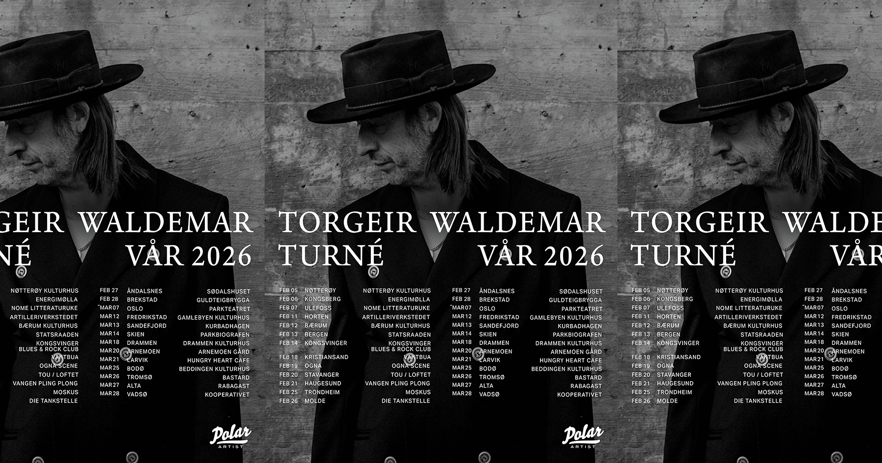 TORGEIR WALDEMAR — Torgeir Waldemar legger ut på sin hittil største turné. Med det kritikerroste albumet «MERCY» fra 2024 friskt i minne og en ny låtserie på vei, legger Torgeir Waldemar ut på sin største norgesturné hittil. Hele 26 spillesteder fra februar til april står for tur, der Waldemar inviterer publikum til et nært og intenst musikalsk univers.